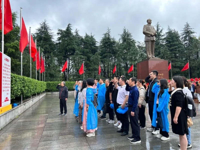韶峰巍然耸立,松柏青翠挺拔,仪式正式开始,随着激昂的音乐响起,威武的武警礼兵迈着坚定有力的正步,护送着花篮走向毛泽东同志铜像。苏州市昆山生态环境局学员代表仔细整理花篮上的红色缎带。全体在场人员向毛泽东同志铜像鞠躬,表达深切缅怀之情。随后,学员们瞻仰了毛泽东故居、刘少奇故居、雷锋生平事迹陈列馆等,追寻伟人足迹,缅怀革命先烈,感悟老一辈无产阶级革命家的崇高品德。